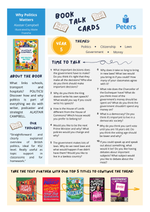 Based on exciting new reads from a range of publishers, these printable PDFs feature discussion points and further reading suggestions. They cover a range of recommended new titles selected specifically to appeal to each year group and to help you support your pupils in generating the wider discussion around books.
