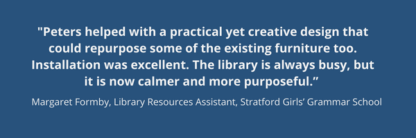 Margaret Formby, Library Resources Assistant, says: "The aim was for it to be a calm space for use by all year groups as a library, study space and wellbeing area. It needed to make as efficient use of the space as possible while not losing too much shelf space for books."