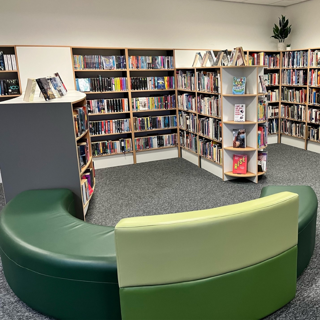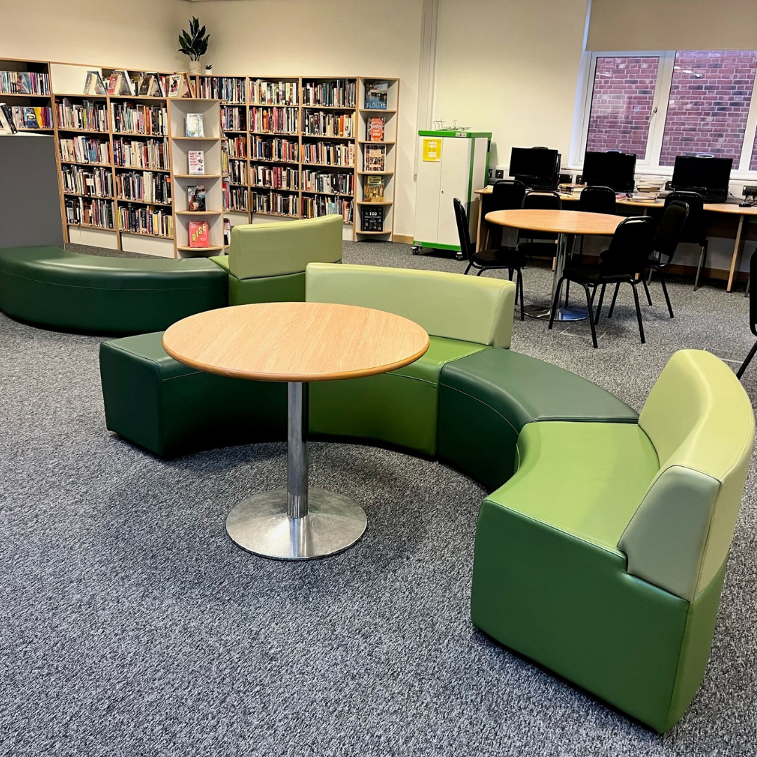 How did the team create a calm space at this busy school?We incorporated neutral, earthy tones into the interior design to avoid an overstimulating environment. For this, we used our Moss, Wasabi and Forest green shades, which customers can select when ordering their bespoke furniture. Forest green is a low wavelength colour that promotes restfulness and calm to improve focus, while greens like Moss and Wasabi can promote good mental health by providing students with stress relief and aiding concentration. It needed to be a multifunctional space. How did you achieve this?We ensured that there was adequate floor space for any additional functions of the library, for instance large meetings and exam work. The modular seating allows for layout flexibility, as it can be reconfigured if needs change. It's also great for supporting extracurricular activities like book clubs. Are there any different considerations for secondary schools and primary schools?A mature colour scheme with modern materials gives the space a grownup feel. While primary school students tend to be more content when seated in the same area (for example a rug with cushions), for this secondary space we focused on creating seating areas that give students the option to study independently or work in groups. This also helps to improve the flow of the space. Since high school students often use the library for revision as well as reading for pleasure, it was also important to design a more focused environment. Why is seating important for a library?Seating can make the library a more appealing space to visit; if there isn't somewhere comfortable to relax or settle down to revise, students' visits will be short. When working with schools to encourage reading for pleasure, we need to make sure that these focused, calming environments are as welcoming and comfortable as possible. If there is a range of library seating, students can choose where they would like to sit and even find their favourite areas; perhaps they prefer a private corner to study, or like to work at a computer desk. Either way, we design each of our library spaces to meet learning needs and provide a variety of options. |