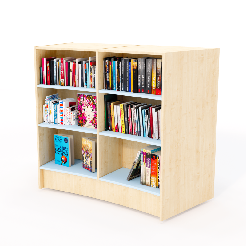 Fantastic for softening the edges of a reading zone, this curved bookcase is perfect for libraries and large book corners. The double-sided unit has six fixed shelves that are split into twelve handy compartments for categorising and displaying books. Supplied with castor wheels, it can be moved to create partitions or free up space for other activities. The top of the bookshelves offer plenty of space for curriculum or topic book displays.