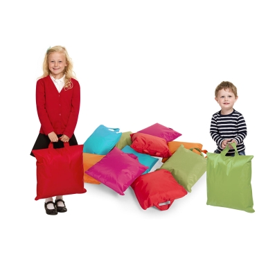 Add a pop of colour to your reading space with our vibrant grab and go cushions. The fibre filled padding ensures comfort alongside the sturdy carry handles for on the go learning. Available in a pack of 10.