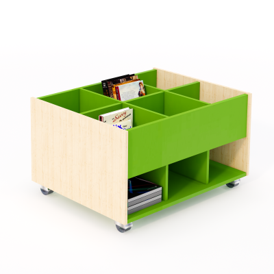 Our unique large white kinderbox comes with 6 square pastel holes for picture books. As well as space on the bottom for further books or items to display. The kinderbox comes with castors.