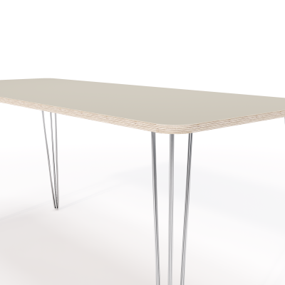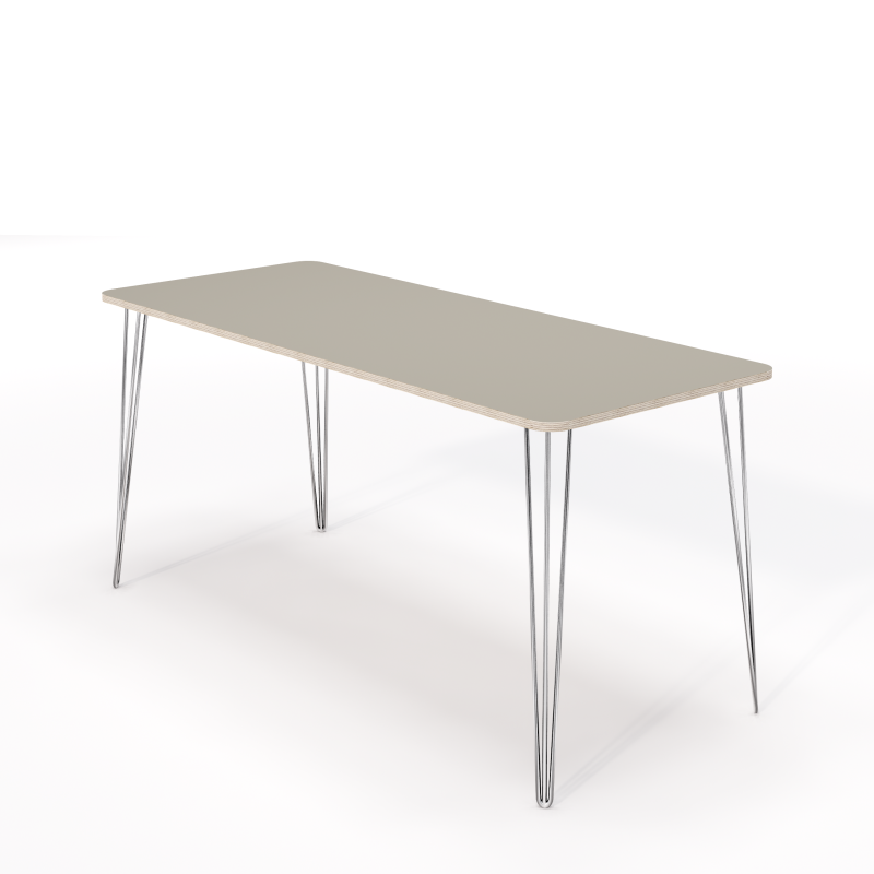 A sharp looking table with hairpin legs is perfect for a study area. Can fit 4 chairs around the table.