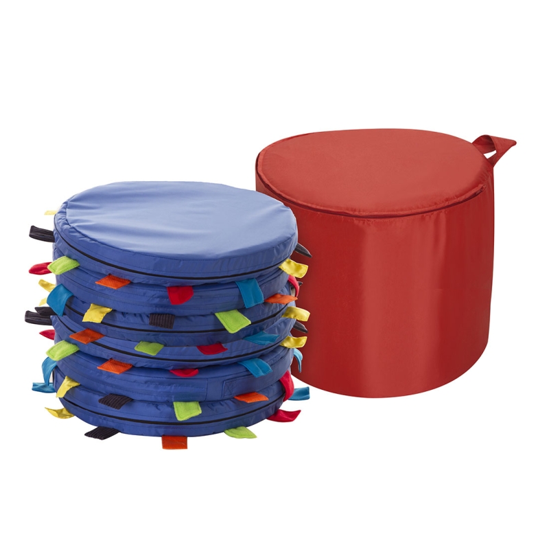 6 x Sensory touch tags carry cushion H: 5cm, Dia: 40cm