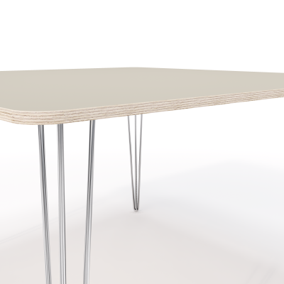 A sharp looking table with hairpin legs is perfect for a study area. Can fit 4 chairs around the table.